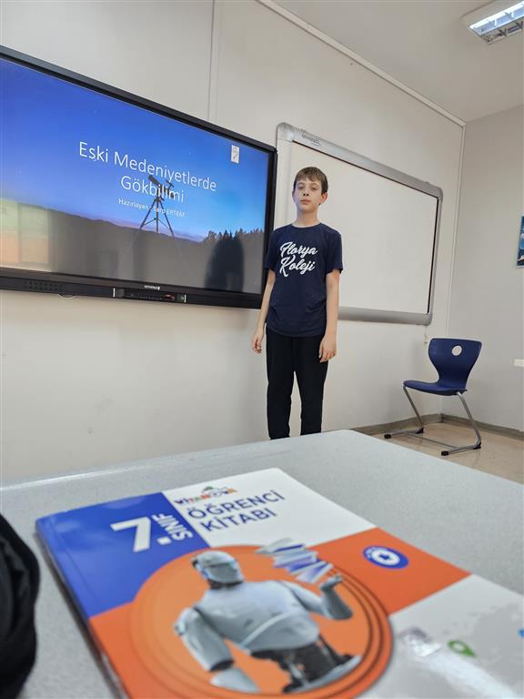 Kendi merak ettikleri konuları araştırarak arkadaşlarıyla paylaşan öğrencilerimiz, hem öğreniyor hem de bilginin ışığını sınıf ortamına taşıyor.