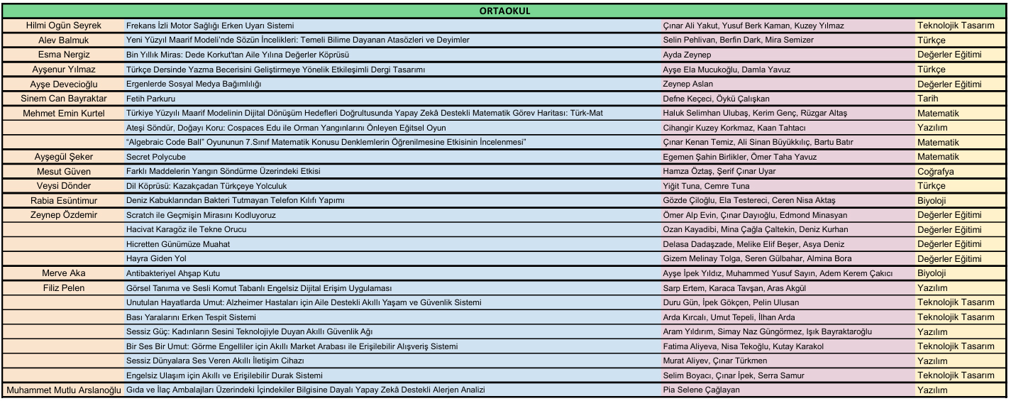 Çalışmalarda emeği geçen tüm öğrenci ve danışman öğretmenlerimize teşekkür eder başarılarının devamını dileriz.